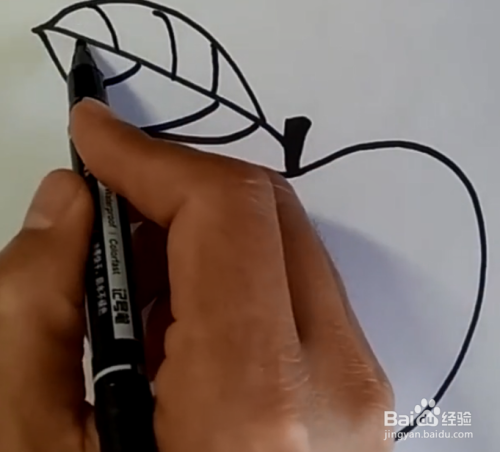 再用黑色的笔画出苹果的枝干。