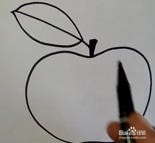 先用黑色的笔勾勒出一个苹果的轮廓。