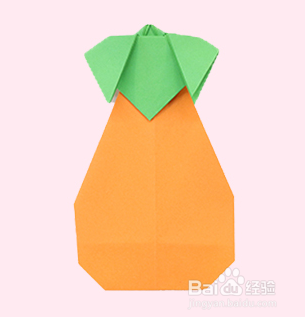 翻面,把顶角翻折两次,露出一个小尖尖,茄子蒂就折好了