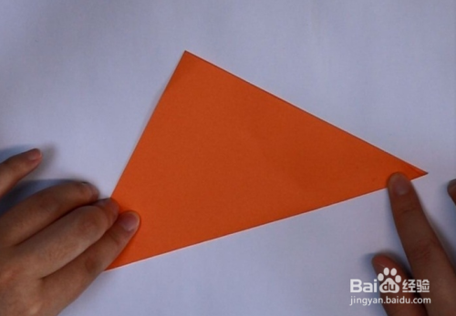 准备一张橙色正方形纸,对角线对折,展开,两边对齐折痕折叠。