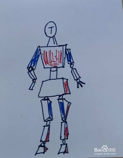 最后,给部分部位涂上喜欢的颜色,这样【木头人】就画好了!