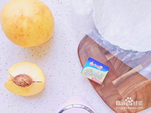 这份早餐那是相当的快手了,用了手抓饼烤出来非常酥脆,黄桃用安佳黄油煎软方便操作!准备好所有食材,黄桃半个安佳黄油一小盒,手抓饼一片