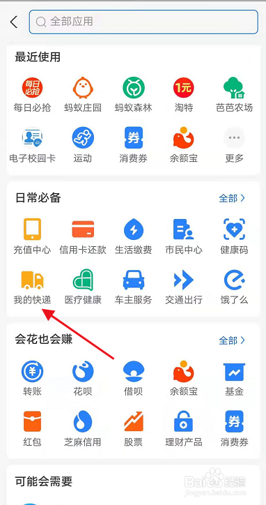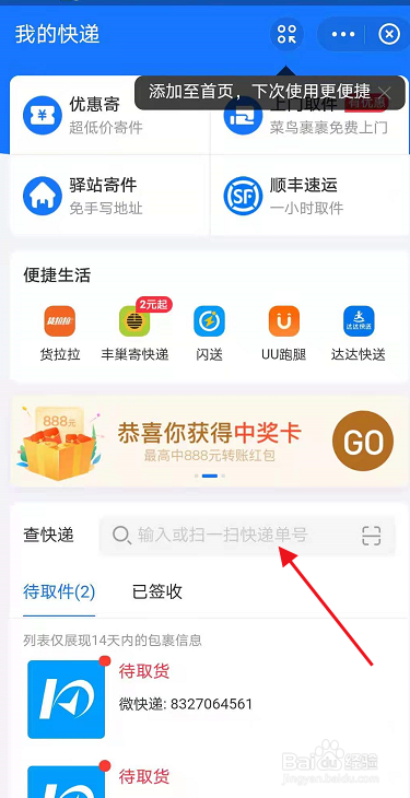 点”查快递“,在搜索栏中输入快递单号,点击”查询“即可。