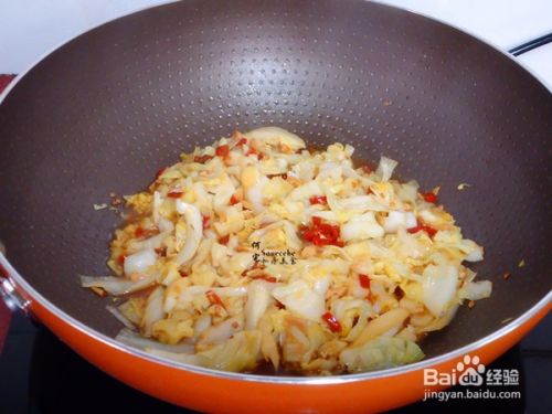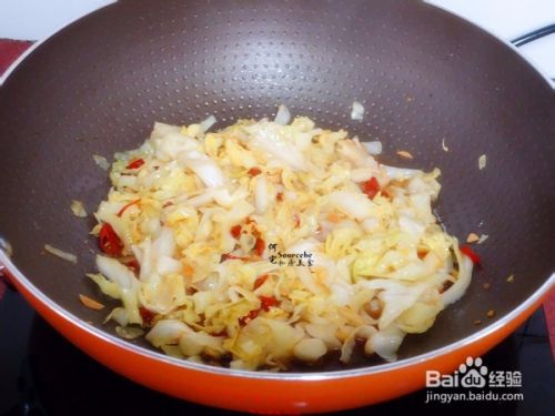 卷心菜炒至变软,改为中火,让卷心菜入味