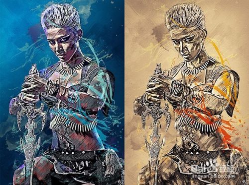 动作支持CS3以上版本软件,首先陌鱼社区下载“制作复古铅笔油漆泼墨飞溅效果PS动作”,然后用这个动作即可制作出下面图片效果,下面请看演示教程。