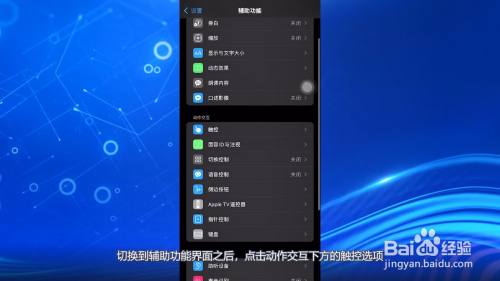 切换到辅助功能界面之后,点击动作交互下方的触控选项,进入下一个新的页面。