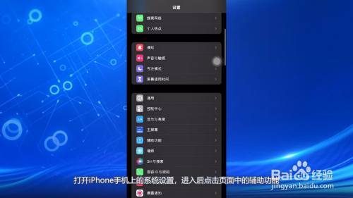 打开iPhone手机上的系统设置,进入后点击页面中的辅助功能。