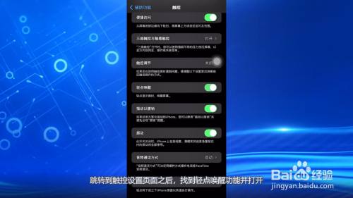 在iPhone触控设置里面将轻点唤醒功能打开,打开之后轻点手机屏幕两下即可唤醒屏幕,以下是详细操作步骤: