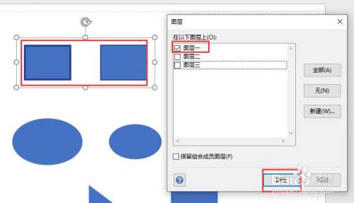 选中要分配的形状,点击【图层】,弹出列表中点击“分配到图层”。