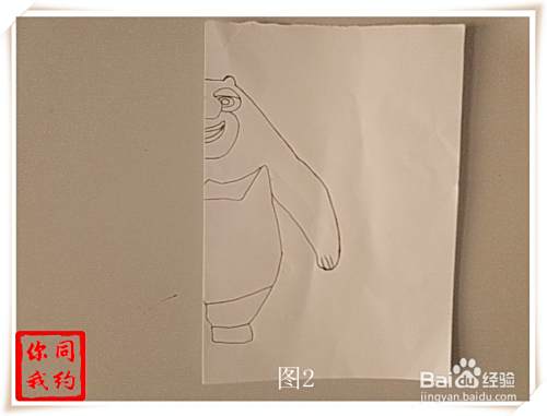 沿着对折线处画出“熊二”的一半轮廓(如图2)。