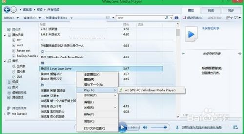 Play To用途:在通常情况下,可以在Windows Media Player 12媒体库中选取视频或音频,图片等文件,如果此时在你的网络环境中有可用的设备,比如支持Wifi的电视、音响或者已经加入家庭网设置的另一台电脑或者平板,则可以借助右键菜单里中的Play To,实现远程播放。