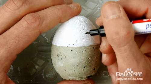 等待水泥干涸后,将鸡蛋壳用小刀去掉。