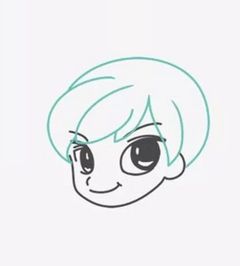 完成脸部我们添加头发,画出许多月牙形状的连在一起。然后用一个大半圆全部圈进去就可以。