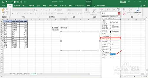 在属性列表中,需要关联上单元格数据源。在LinkedCell里输入G5,Value自动显示出当前关联数据源的值“HB123456”,此时条形码图形为空白,效果如下图所示。