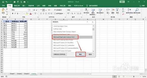 单击“其他控件”图标按钮,在弹出“其他控件”对话框里找到条形码控件“Microsoft BarCode Control 16.0”,点击“确定”按钮,如下图所示。