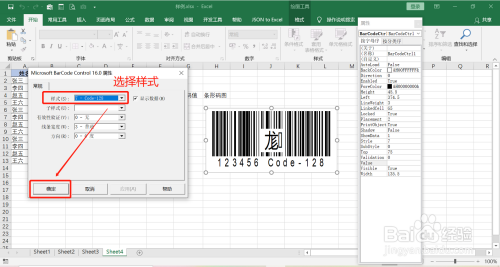 在“Microsoft BarCode Control 16.0 属性”对话框,样式(S)选择“7 - Code-128”,依次点击“应用” -> “确定”按钮,效果如下图所示。
