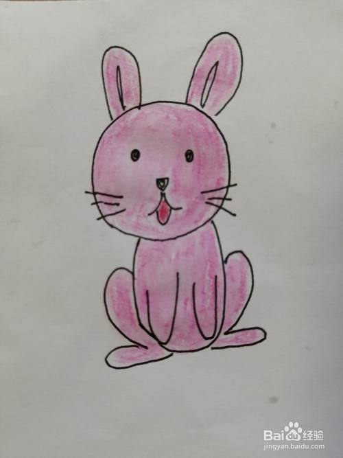 最后给小兔子涂上粉红色的颜料。可爱的小兔子就画好了。