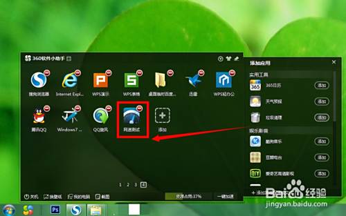 添加以后,我们就可以看到网速测试出现在360软件小助手的界面上了,以后想要使用网速测试的话,可以从这里直接单击该图标,直接打开该应用了。
