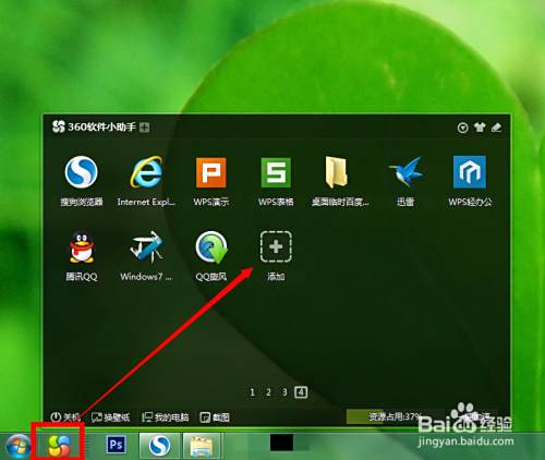 我们很多朋友都会安装有360安全卫士,可以通过360安全卫士把360软件小助手添加到电脑任务栏的左边。在那里点击360软件小助手那个彩色四叶草的图标,可以打开360软件小助手的界面,点击上面的“添加”按钮