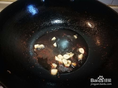 准备蒜片,锅中放油,然后把蒜片放到锅中爆香。