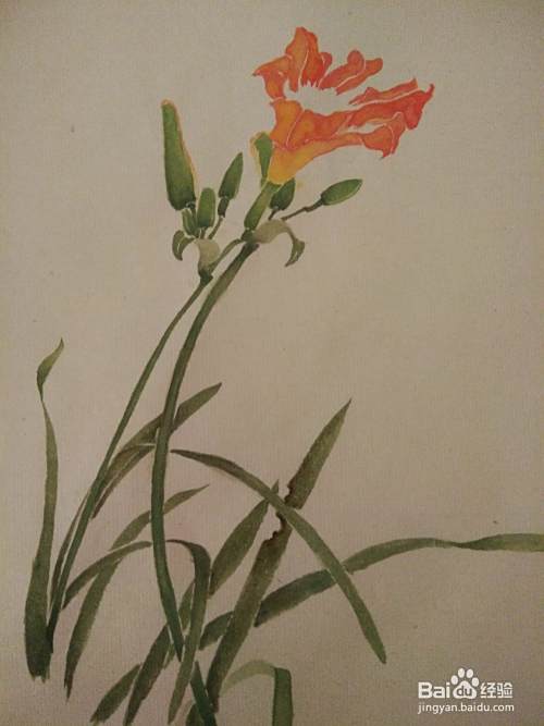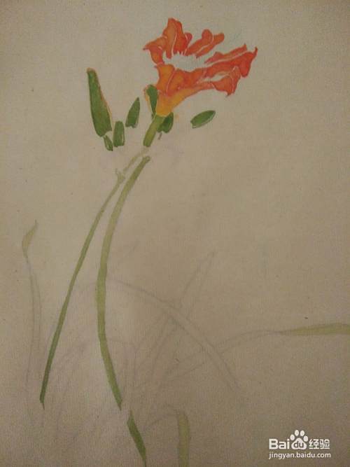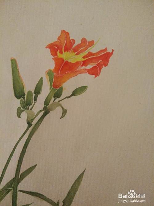 1.有些橙红色的萱草花瓣偏黄,可趁画面湿润时,撞入藤黄水或其他颜色。