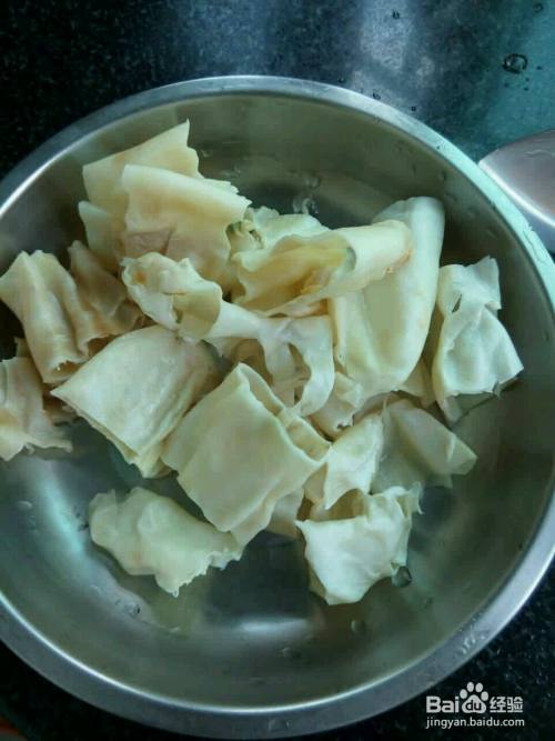 将花胶切成自己喜欢的大小,这里不建议切太大,太大花胶里的胶原蛋白等物质没办法更好的释放出来。