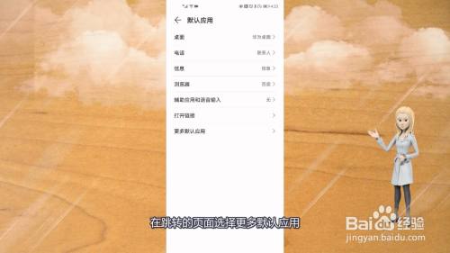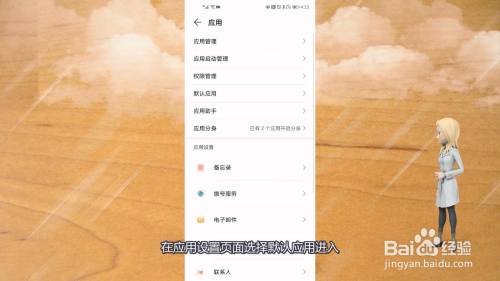 在应用设置页面选择默认应用进入。