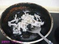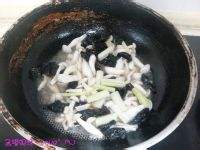 油加热,放入葱炒出香味。倒入白玉菇轻炒。