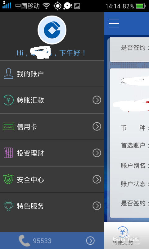 打开安装好了的建设银行的手机客户端,登陆到自己的账户里面去