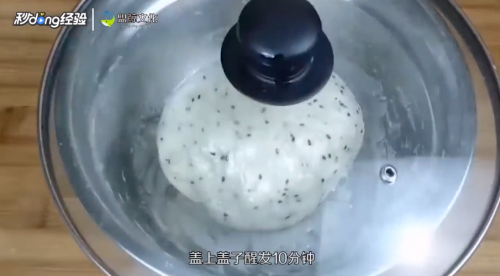 4倒入食用油涂抹均匀,盖上盖子醒发10分钟。