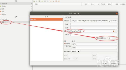 重启uget。新建下载任务,设置需要下载到的文件目录,最大的连接数。点击确定,开始下载。