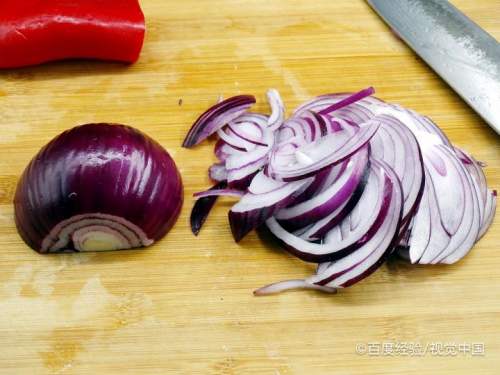 别怕哦,切洋葱前把刀放在冷水中浸一会,再切时就不会辣眼睛啦。