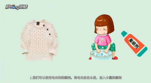 可以使用毛衣柔顺剂,将毛衣放入水中,加入毛衣柔顺剂。