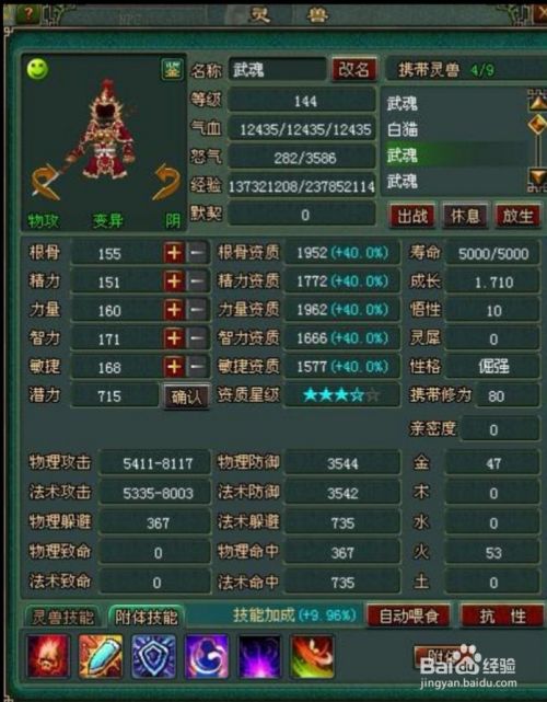 首先要先明白灵兽自带3个附体技能格子,3个职业附体技能格子,2个绝技技能格子。绝技技能最多可拥有2个。然后我们开始冲格子(也就是技能数量)