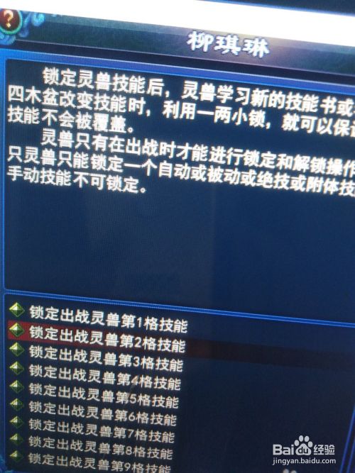 找金陵柳琪琳锁定A技能。一定要看下该技能位于灵兽的第几个技能格子。然后选择锁定找金陵柳琪琳锁定A技能