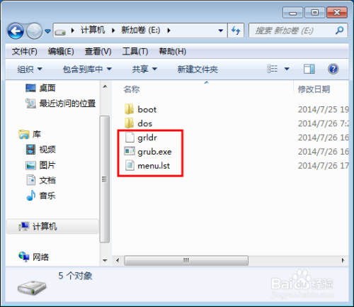 复制grub4dos中的menu.lst还有chinese文件夹中的grub.exe、grldr 这3个文件到U盘根目录