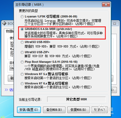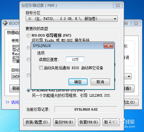 分区引导记录--选择syslinux--安装配置--确定--确定