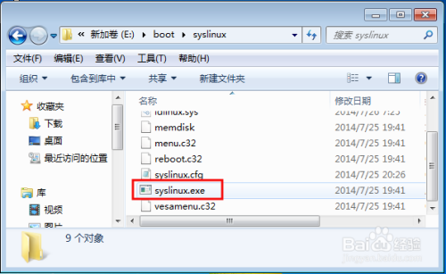 复制syslinux中的win32下的syslinux.exe到/boot/syslinux 文件夹