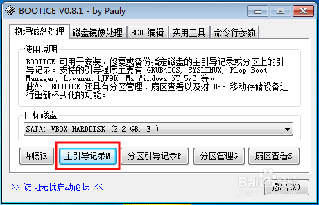 用bootlice把syslinux引导写入U盘的PBR (一定要选择自己的U盘设备)