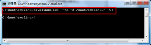 执行 G:\boot\syslinux> syslinux.exe -ma -d /boot/syslinux/ G: