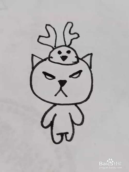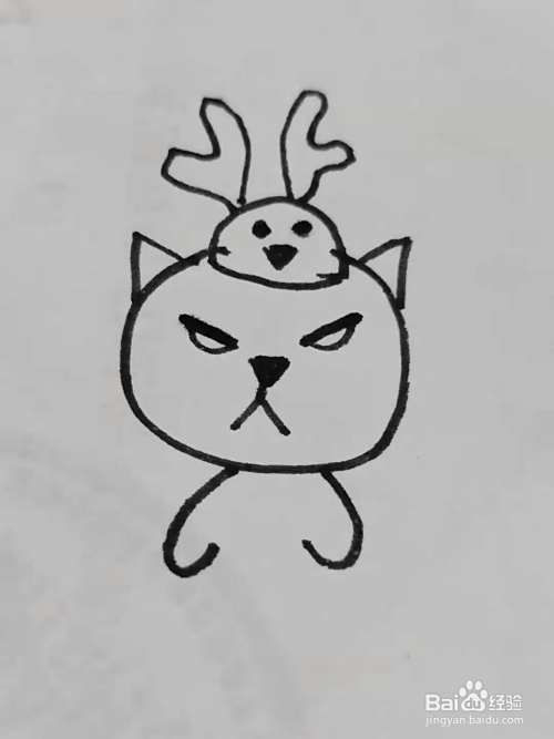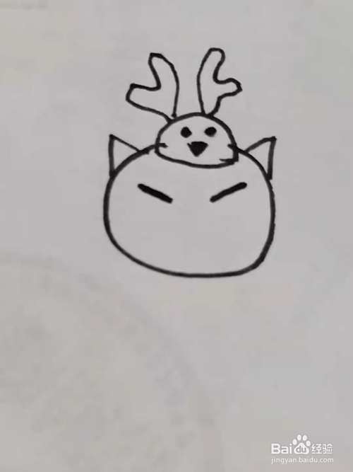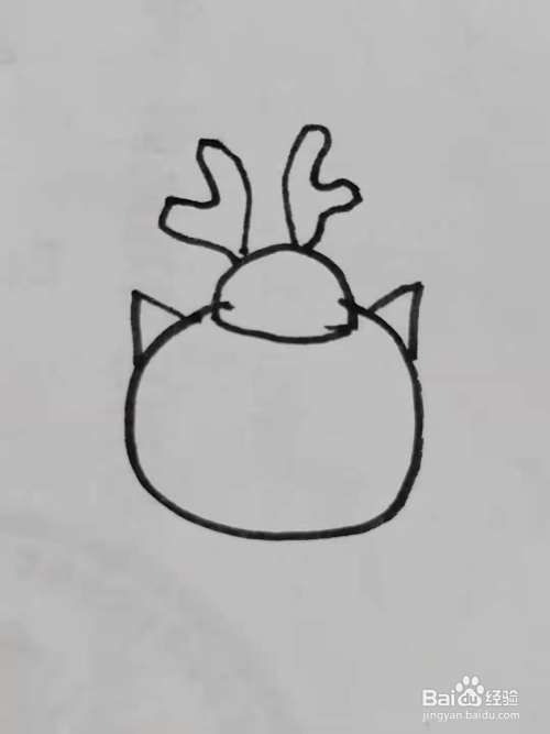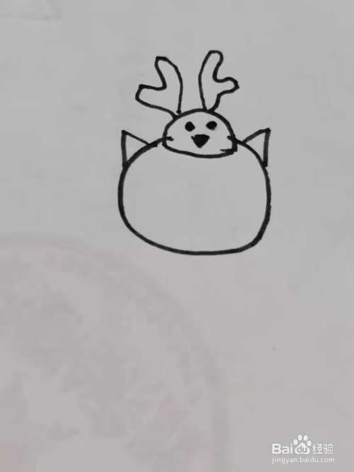 横线的下面画半圆,接着画出小鹿的鼻子和嘴巴。