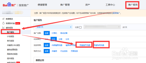 推广报告--账户报告--百度首页流量和贴吧流量报告自选