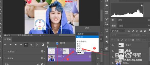 点击视频组中图片右侧的小图标—>在弹出的动感文本框中选择旋转效果,可根据需要自主选择动感效果
