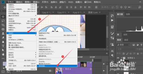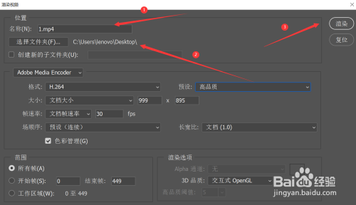 点击文件菜单栏—>在弹出的文本框中选择导出—>在弹出的选项卡中选择渲染视频