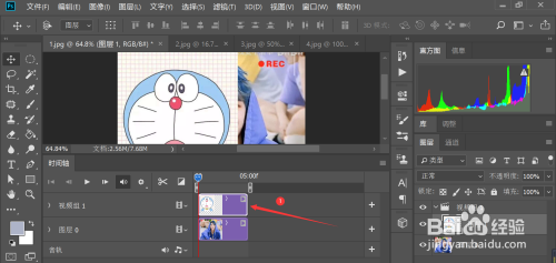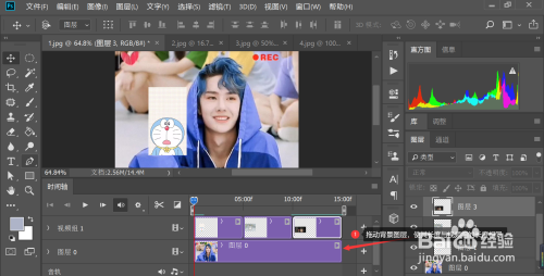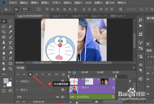将背景图层的长度拉伸到与视频组中的图片长度相同