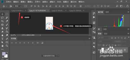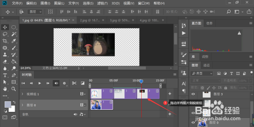 点击打开的图片—>用鼠标拖动到视频组所在的窗口中,并插入到视频组