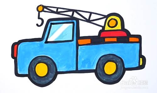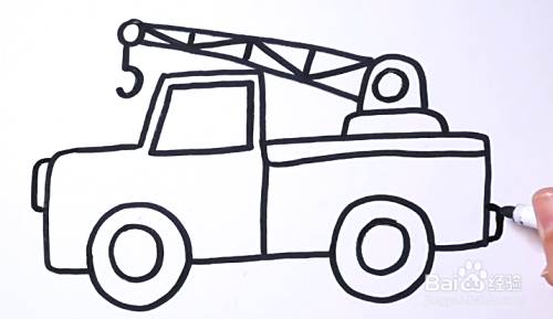 添画一个车窗,原来卡车上面拉着一个吊车。