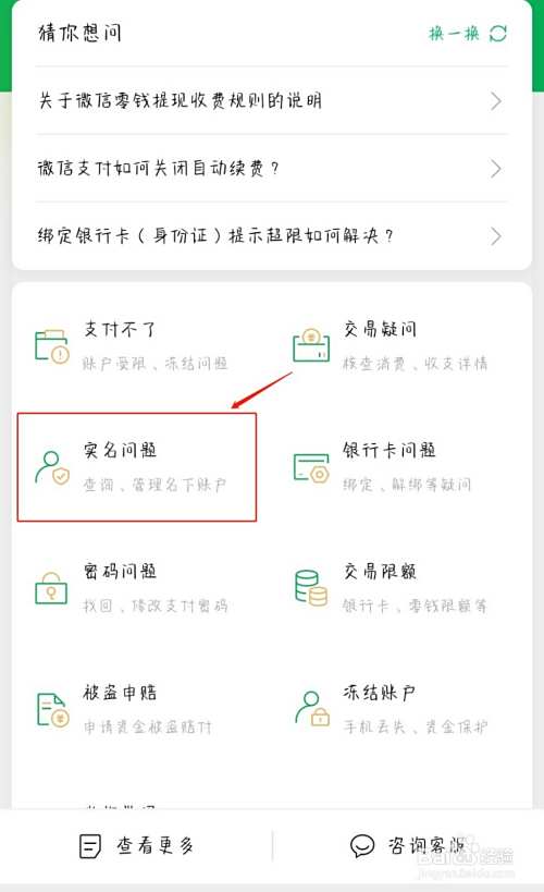 在“帮助中心”页面中选择【实名问题】