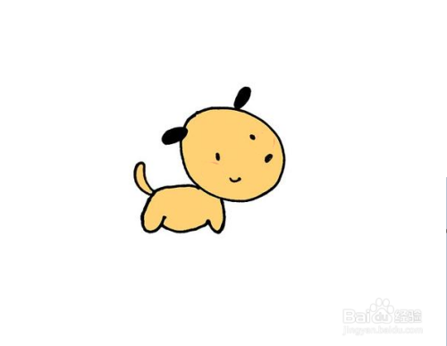 第5步,这一步我们给小狗涂上颜色,除了耳朵是黑色的,他的身体全部给它涂成了黄色,