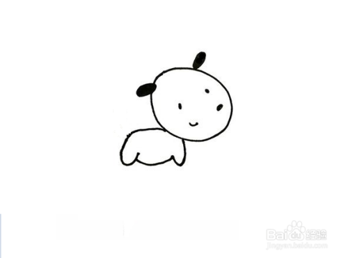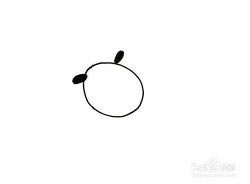 第1步我们先画一个椭圆,来表示小狗的头,然后在椭圆的尾部画两个小椭圆,全部涂黑,表示他的两只耳朵,
